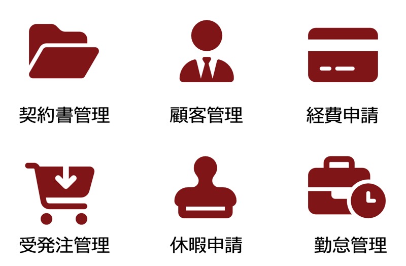 • 多様な用途に対応: 顧客管理や契約書管理、勤怠管理、休暇申請、経費精算など、さまざまな業務プロセスで活用可能です。