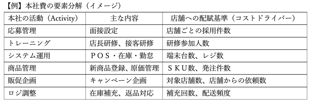 タジマ君:なるほど…。売上は大きくなくても、採用で手がかかってる店舗や、研修依頼が多い店舗には本社費が多く配賦されるんですね。