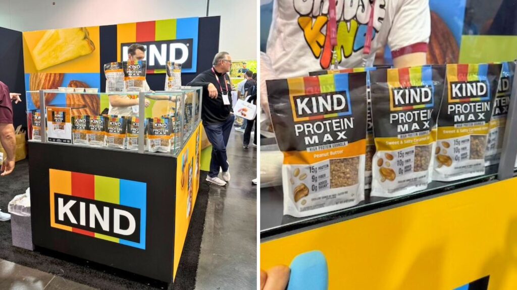 会場の入口付近にはナッツバーで知られる KIND のブースがあり、新商品として「PROTEIN MAX」が大きく打ち出されていた。しかしプロテインの訴求は特定ブランドに限らない。会場を歩いていると、「High Protein」という表示が視界に入り続け、プロテインを打ち出していない商品を探す方が難しいほどだった。
