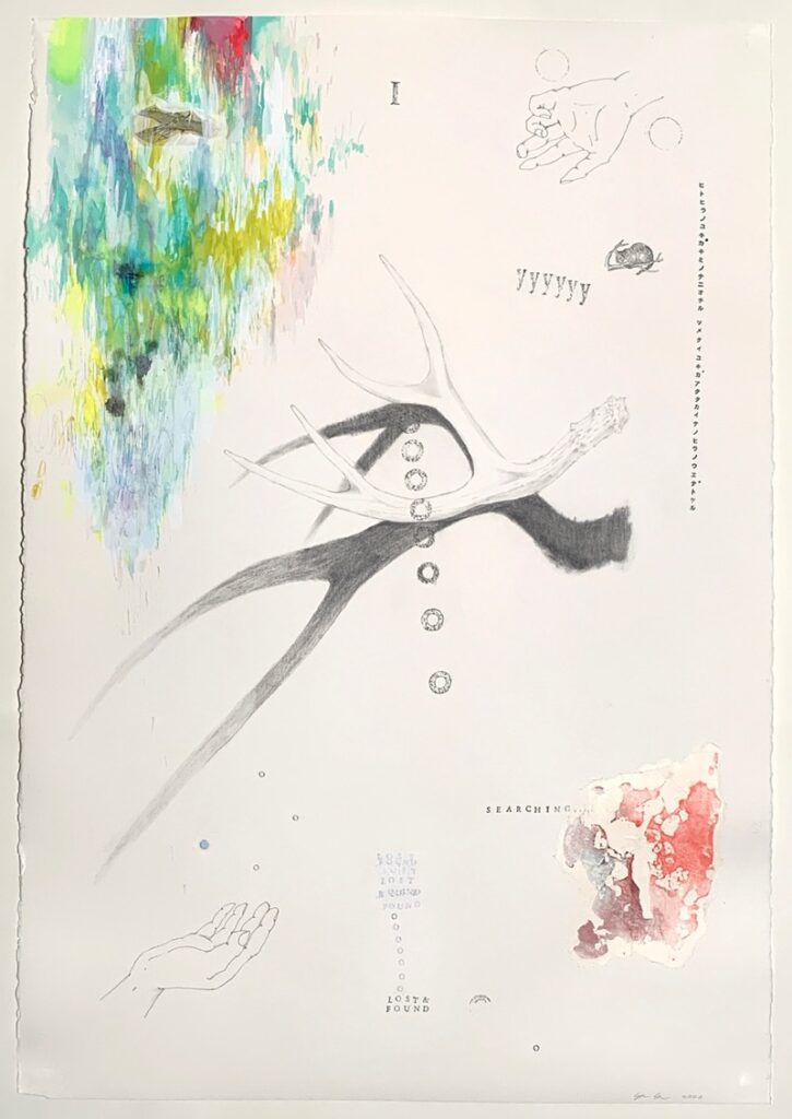 Yukie Yasui “Dialogue with me 1” 2026 Mixed Media on Arches paper 40” x 26”