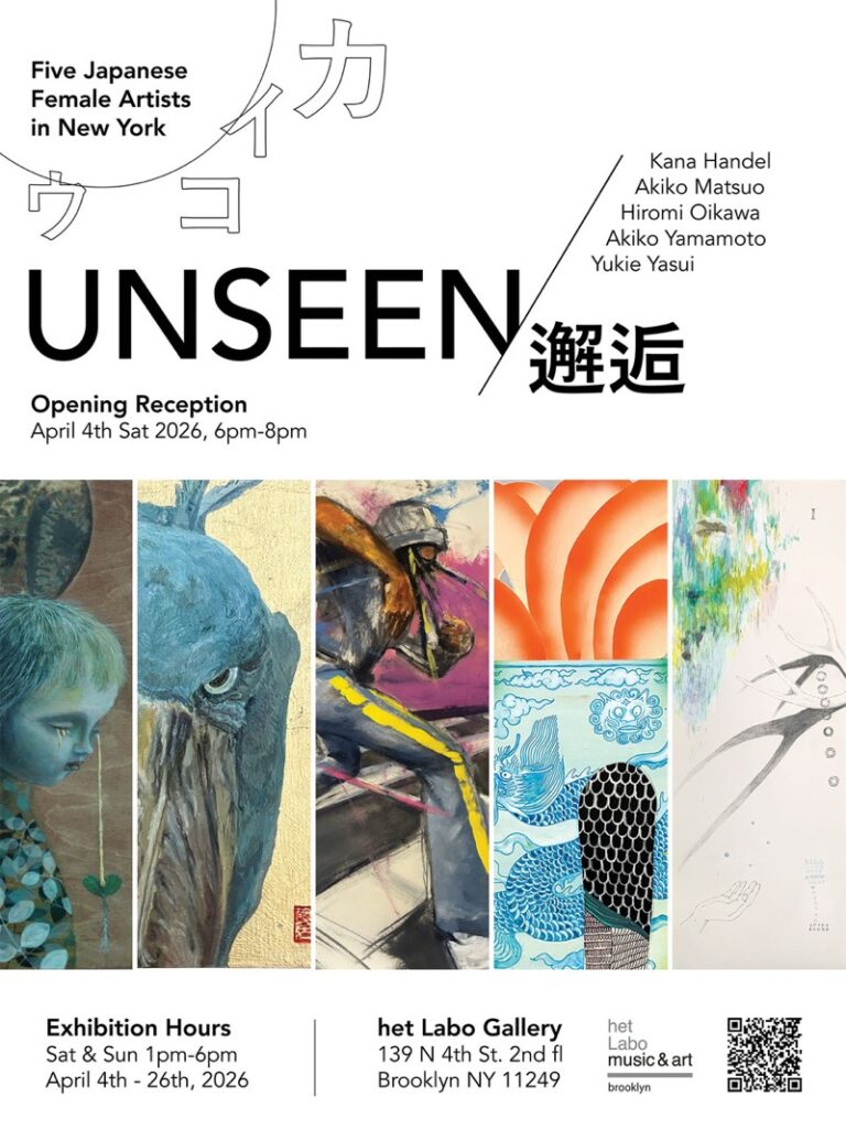 4月4日から26日までニューヨークを拠点に活動する5人の女性作家、ヘンデル佳奈、松尾明子、及川ひろみ、山本章子、安井雪絵によるグループ展「UNSEEN/邂逅」がブルックリンで開催される。